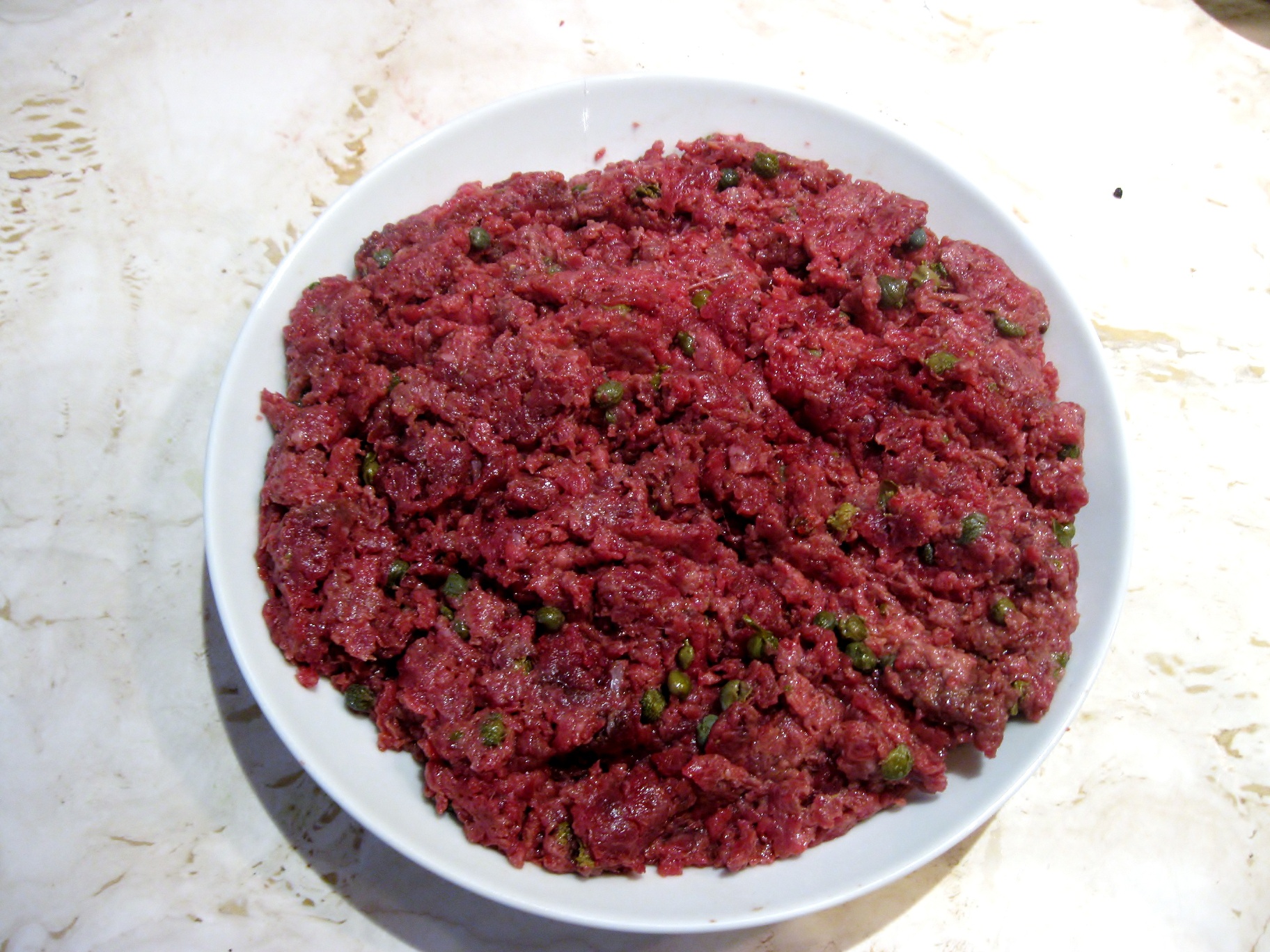 To make meat tartare, combine all ingredients and blend well.