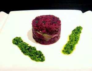 Beef tartare with arugula pesto
