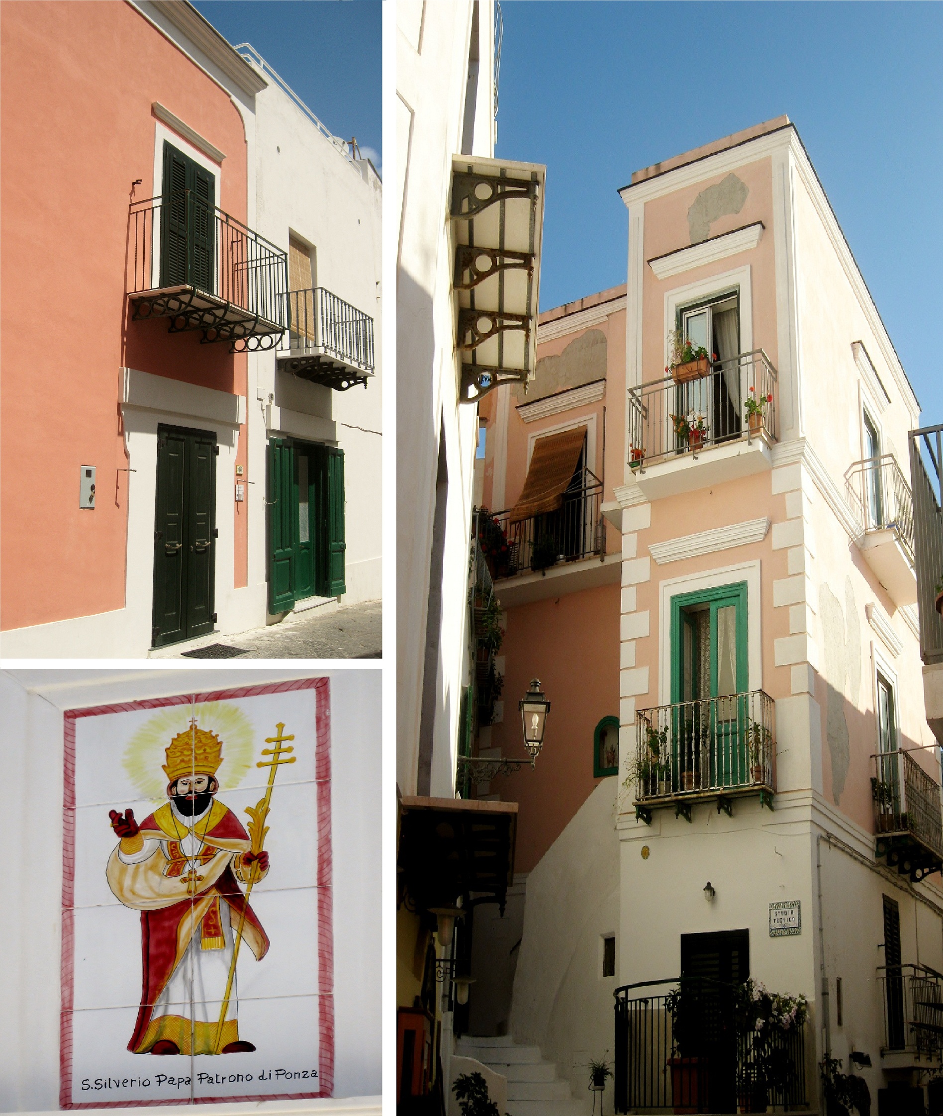 As you can see from these pictures, Ponza’s buildings are mostly painted in pastel colors. The picture on the bottom left is a portrait of San Silverio, the Patron of Ponza. No wonder why in this island every 2 out 0f 5 guys are named Silverio!!!