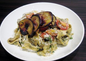 Pappardelle with eggplant cream, cherry tomatoes and parsley